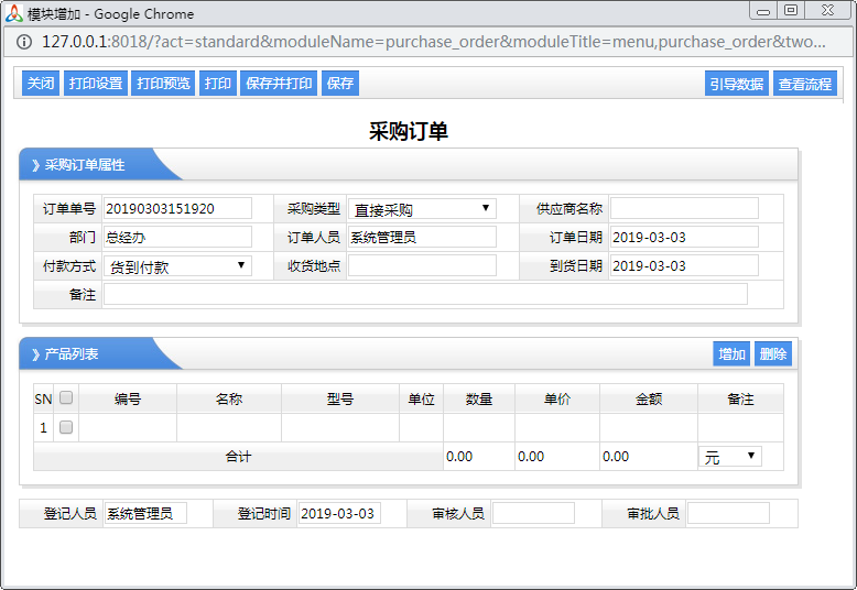 采購訂單 向供應(yīng)商進行產(chǎn)品采購訂單進行登記