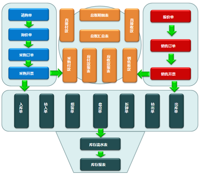 5、組裝單:把多個小的產(chǎn)品組裝成一個大的產(chǎn)品,小產(chǎn)品庫存減少,大產(chǎn)品庫存增加