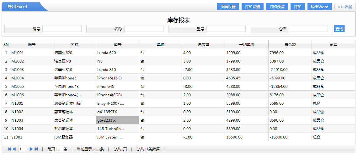 9、庫存報表:查詢產(chǎn)品所在庫存數(shù)量進行分析