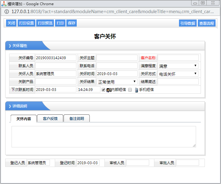 2、服務請求:在客戶關懷過程中,可能可能要進行服務請求