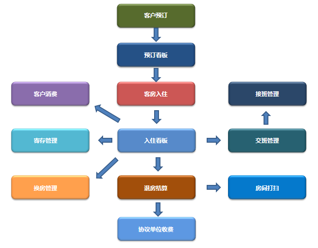 1、客房入?。嚎蛻暨M入酒店進行入住登記