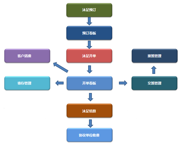 3、沐足結(jié)算:客戶(hù)進(jìn)行沐足結(jié)束,然后進(jìn)行最終費(fèi)用結(jié)算