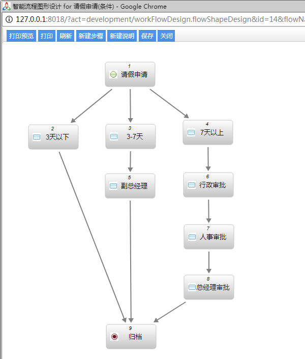 7、支持流程流入,流出進行條件判斷