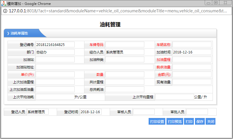 油耗管理 對車輛加油的管理,以及統(tǒng)計(jì)每公里油耗