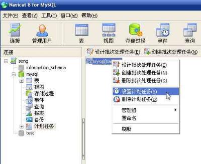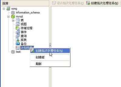 MySQL計劃任務(wù)是對備份的一個綜合的集合和整理,不需要我們手動的去備份,從而來實現(xiàn)備份的還原機制。 MySQL的計劃任務(wù)步驟如下: 1首先我們來在(圖形工具)打開連接到MySQL數(shù)據(jù)庫,打開連接,在MySQL下面右擊計劃任務(wù),創(chuàng)建“批次處理計劃任務(wù)”。