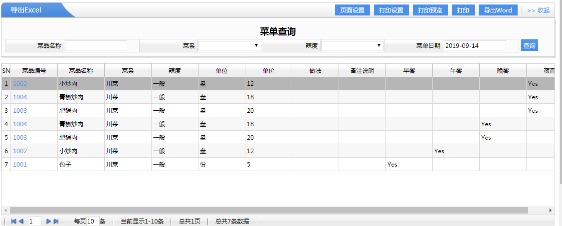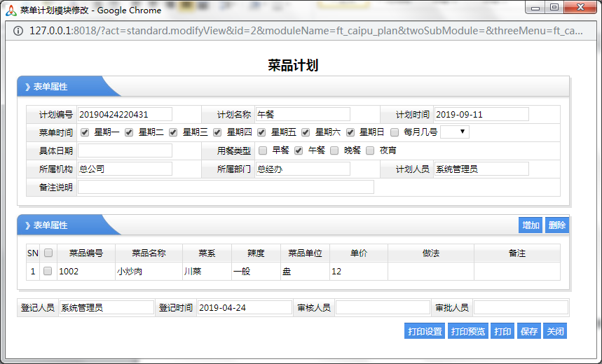 這樣設(shè)計好了以后,在后面要點的菜都是以這個為準(zhǔn),如上面的菜品計劃,也是從這里直接選擇的,那么這樣就比較規(guī)范的管理,也不容易寫錯輸錯