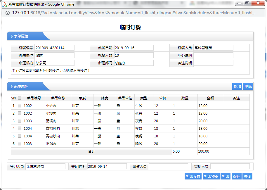 主要記錄是那個往來單位,就餐人數(shù),來公司做什么業(yè)務(wù),方便知道其原因,然后再下面選擇要訂餐的菜單以及數(shù)量,金額。由于外來人員就餐會,是需要即時付費(fèi)的 5、臨時訂餐收費(fèi) 就是對臨時訂餐人員進(jìn)行收費(fèi),那么員工訂餐后,員工向外來人員收費(fèi),或指導(dǎo)外來人員在那里進(jìn)行付費(fèi),收費(fèi)由財務(wù)人員操作,也就是把臨時訂餐的單據(jù)引導(dǎo)過來進(jìn)行對應(yīng)訂餐的總價進(jìn)行收費(fèi)就可以了,表示收費(fèi)就確人了 6、今日預(yù)訂明細(xì) 這只是報表,只是看到今天訂餐的菜單明細(xì)數(shù)據(jù)