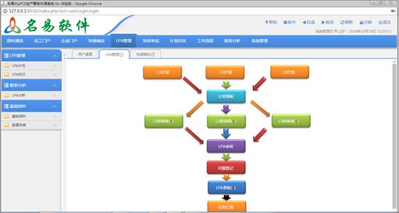一、功能介紹 名易MyPCS生產(chǎn)事務(wù)協(xié)調(diào)系統(tǒng)主要是對生產(chǎn)型企業(yè)對生產(chǎn)過程中的事務(wù)進(jìn)行管理。生產(chǎn)發(fā)現(xiàn)問題,問題處理,其功能有事務(wù)處理流程,事務(wù)分析流程,及事務(wù)處理流程報(bào)表;快速響應(yīng),LPA審核,知識培訓(xùn)及考試等。 1、信息管理:信息管理從內(nèi)部郵件,外部系統(tǒng),系統(tǒng)短信,手機(jī)短信,微信信息,新聞,通知,公告,即時(shí)通訊等進(jìn)行全面的信息流通,削除信息孤島。 2、流程管理:通過事務(wù)流程,任務(wù)流程,審批流程進(jìn)行業(yè)務(wù)管理流程的疏通,事務(wù)流程就是按辦事的流程順序進(jìn)行流程處理,任務(wù)流程就是上級向下級進(jìn)行安排,下達(dá)任務(wù)的執(zhí)行的流程,審批流程表示下級向上級進(jìn)行提交審批的單據(jù),全面達(dá)到業(yè)務(wù)流程的疏通。 3、計(jì)劃任務(wù):采用戴明PDCA循環(huán)理論設(shè)計(jì)原理,大計(jì)劃可以分解成小計(jì)劃,計(jì)劃再分配成任務(wù),任務(wù)還可以再進(jìn)行分解成小任務(wù),采用人性化接收任務(wù),接收任務(wù)再進(jìn)行匯報(bào)。同時(shí)可以看到該任務(wù)的完成情況,上級任務(wù)或計(jì)劃均可以看到所有的下級任務(wù)完成情況,進(jìn)展時(shí)度;在計(jì)劃,任務(wù)完成后,對該計(jì)劃,任務(wù)進(jìn)行總結(jié),并對任務(wù)執(zhí)行者進(jìn)行考核打分,實(shí)現(xiàn)平時(shí)點(diǎn)點(diǎn)滴滴績效考核。 4、知識管理:從文檔管理,網(wǎng)絡(luò)硬盤,圖片管理,自定義檔案管理進(jìn)行全面的知識,內(nèi)容,檔案進(jìn)行管理;可以把個(gè)人與分司分別進(jìn)行管理;多元化的知識管理;對每個(gè)文件進(jìn)行豐富的權(quán)限管理;支持版本管理;支持多維度的查詢;進(jìn)行文件加密;Web在線OFFICE進(jìn)行編輯,并有留痕跡,簽章等;支持大文件的上傳及下載;支持圖片,及大圖片的上傳、下載及在線查看 5、辦公智能:辦公智能就是利用自動化引擎技術(shù),把日常經(jīng)常要使用,并且有規(guī)律的動用,無需人員干預(yù)的處理,讓系統(tǒng)自動完成的事項(xiàng);自動化的內(nèi)容都是可以自己根據(jù)自已的情況來進(jìn)行定制,如銷售自動化,服務(wù)自動化,辦公自動化 6、會議管理:對公司會議室及開會情況的管理,其主要功能有會議室設(shè)置,會議室狀態(tài),會議申請,會議登記,會議記錄 7、事務(wù)審批流程:在生產(chǎn)過程中遇到生產(chǎn)的產(chǎn)品出現(xiàn)問題,就要發(fā)起流程進(jìn)行處理,找到問題點(diǎn)在那里,然后糾處理,以免循環(huán)生產(chǎn)出大量的次品產(chǎn)品。如果遇到難以判斷的事務(wù),則可以走事務(wù)分析流程,詳細(xì)更深層,更徹底找到問題點(diǎn),以免重復(fù)發(fā)生問題。 8、快速響應(yīng):在生產(chǎn)過程中遇到問題時(shí),進(jìn)行快速解決問題,其功能有問題發(fā)起,指定責(zé)任人,問題看板,每一個(gè)節(jié)點(diǎn)是否解決,是否超時(shí),問題關(guān)閉,問題分析。 9、LPA審核:分層審核是一種由組織中各級人員按照預(yù)先計(jì)劃的頻次定期參與評審并回顧整改為基礎(chǔ)的標(biāo)準(zhǔn)化的評審過程,用以確保制造過程受控并加強(qiáng)精益制造理念。生產(chǎn)車間,每個(gè)崗位都要進(jìn)行各項(xiàng)審核,如果發(fā)現(xiàn)問題時(shí),再提交問題進(jìn)行處理。 10、培訓(xùn)考試:生產(chǎn)型企業(yè)都會有很多崗位的培訓(xùn),培訓(xùn)后是否合格,就要進(jìn)行考試;一個(gè)崗位要求需要多少,考試通過了多少,還差多少一目發(fā)然,以保證生產(chǎn)順利進(jìn)行 二、技術(shù)特點(diǎn) 名易MyPCS生產(chǎn)事務(wù)協(xié)調(diào)系統(tǒng)運(yùn)用PHP+MySQL開發(fā)WEB運(yùn)用平臺,采用AJAX實(shí)現(xiàn)異步刷新,降低網(wǎng)絡(luò)通訊、服務(wù)器的負(fù)貨。采用MVC三架構(gòu)設(shè)計(jì)模式。實(shí)現(xiàn)模型層(Model)、實(shí)現(xiàn)視圖層(View)、控制層(Controller)的分離,并且把視圖層再分層用戶視圖層,用戶可以隨便自定義頁面,把能更好地進(jìn)行維護(hù)、升級和優(yōu)化。 三、主要特點(diǎn) 1、字段級權(quán)限:完全每個(gè)字段每個(gè)按鈕,每個(gè)表單設(shè)計(jì),自動生成字段對應(yīng)的權(quán)限,方便用戶對每個(gè)字段進(jìn)行控制 2、橫向權(quán)限:橫向權(quán)限主要包含,角色權(quán)限,用戶組權(quán)限,用戶權(quán)限 3、縱向權(quán)限:縱向權(quán)限主要包含,角色上下等級權(quán)限,機(jī)構(gòu)部門上下等級權(quán)限 4、離散權(quán)限:主要是針對每一條數(shù)據(jù)進(jìn)行不同的權(quán)限控制。 5、權(quán)限繼承:主要是下一級繼承上一級權(quán)限,不用再進(jìn)行設(shè)置。 6、自定義列表顯示:可以自由的控制每個(gè)的顯示,以方便用戶進(jìn)行查看。 7、自定義列表打?。嚎梢宰杂傻目刂泼總€(gè)的打印,以方便用戶進(jìn)行打印。 8、自定義系統(tǒng)流程:自定義流程并關(guān)聯(lián)的表單 9、自定義工作流程:支持固定,自由,半自由流程;支持串行,并行,選擇,合并,子父流程;委托,受托,催辦,輔辦,督辦,預(yù)辦,代辦,調(diào)度,換人辦理,加簽,會簽,流程監(jiān)控等;支持WEB印章,手寫簽名,PDF簽章,WORD套紅等 10、流程穿梭:系統(