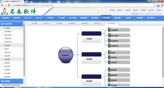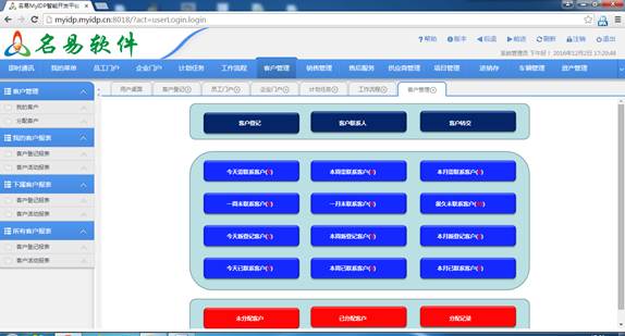 六、系統(tǒng)應(yīng)用的價(jià)值 1、縮短開(kāi)發(fā)周期、降低開(kāi)發(fā)成本。 通過(guò)使用名易名易MyCRM客戶關(guān)系管理軟件先進(jìn)的技術(shù)架構(gòu)和成熟的基礎(chǔ)架構(gòu),能夠縮短軟件系統(tǒng)的開(kāi)發(fā)周期,降低開(kāi)發(fā)成本和風(fēng)險(xiǎn),快速開(kāi)發(fā)出企業(yè)的應(yīng)用系統(tǒng)。 2、降低維護(hù)成本。 協(xié)同平臺(tái)基礎(chǔ)架構(gòu)保證了軟件系統(tǒng)有良好的擴(kuò)展性和可維護(hù)性,同時(shí)還提供完善的開(kāi)發(fā),維護(hù)的操作界面,能夠很大程度上降低軟件系統(tǒng)的維護(hù)成本。 3、降低實(shí)施的風(fēng)險(xiǎn)。 傳統(tǒng)的應(yīng)用系統(tǒng)常常是把某個(gè)功能模塊寫(xiě)死在程序代碼中,不能靈活變通,如果該功能不能滿足公司的管理流程,那只能重新開(kāi)發(fā),時(shí)間周期長(zhǎng),費(fèi)用高,風(fēng)險(xiǎn)高,實(shí)施難度大;而名易名易MyCRM客戶關(guān)系管理軟件完全支持企業(yè)業(yè)務(wù)流程進(jìn)行靈活定制的開(kāi)發(fā),完全基于模塊的調(diào)用,即使沒(méi)有相應(yīng)的模塊,通常寫(xiě)一個(gè)模塊也是很方便,快速的。從面保證了快速成功實(shí)施。 4、降低部署和使用成本。 PHP+MySQL+Apache對(duì)硬件配置要求都比較低,運(yùn)行速度非常的快,安裝配置非常的簡(jiǎn)單容易;并且大部份都采用了AJAX技術(shù),實(shí)現(xiàn)異步刷新,減少了系統(tǒng)頁(yè)面數(shù)據(jù)的傳遞,只傳數(shù)據(jù)。因此能夠降低客戶的部署和使用成本,充分適應(yīng)不同類(lèi)型和規(guī)模的客戶的應(yīng)用需要。 5、協(xié)同的資源交互,實(shí)時(shí)更新各種信息,內(nèi)部信息交流大大增強(qiáng) 。 6、協(xié)同的信息管理,消除信息孤島,實(shí)現(xiàn)知識(shí)和信息共享。 7、科學(xué)的接待流程,使各部門(mén)在用戶交互和事務(wù)處理中實(shí)現(xiàn)流暢的協(xié)同工作。 8、豐富的報(bào)表功能使管理部門(mén)更容易進(jìn)行數(shù)據(jù)分析,及時(shí)發(fā)現(xiàn)并解決問(wèn)題 。 9、不斷優(yōu)化企業(yè)組織架構(gòu),及時(shí)發(fā)現(xiàn)高素質(zhì)、高效能人才。 10、提升快速響應(yīng)能力,提高工作效率。 總之:名易名易MyCRM客戶關(guān)系管理軟件完全基于“菜單+表單+模塊+流程+報(bào)表+權(quán)限”實(shí)現(xiàn)無(wú)需寫(xiě)程序代碼進(jìn)行二次開(kāi)發(fā),快速開(kāi)發(fā)出適合自己的業(yè)務(wù)系統(tǒng),以滿足“隨需應(yīng)變”的需求!搭建安全的應(yīng)用管理平臺(tái)! 宗旨:滿足客戶未來(lái)的需求! 七、系統(tǒng)展示 下面進(jìn)行軟件界面截圖以及簡(jiǎn)單說(shuō)明