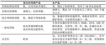 2國內(nèi)外同類技術(shù)比較 電力通信網(wǎng)絡(luò)及其管理的重點任務(wù)是保障電網(wǎng)安全穩(wěn)定運行, 而電信運營商通信網(wǎng)絡(luò)及其管理是是以運營為目的。通信管理系統(tǒng)與電信運營商OSS系統(tǒng)存在較大差異, 相關(guān)功能及指標(biāo)不具可比性。國外電力系統(tǒng)通信綜合管理和國內(nèi)通信專網(wǎng)綜合管理還處于起步階段, 本產(chǎn)品作為國內(nèi)外電力系統(tǒng)和通信專網(wǎng)中建設(shè)覆蓋最廣、規(guī)范程度最高、應(yīng)用架構(gòu)最完整的通信信息化系統(tǒng), 各項性能指標(biāo)與國內(nèi)外同類技術(shù)比均達(dá)到設(shè)計領(lǐng)先水平, 具體比較如下: 表4 通信管理系統(tǒng)與同類系統(tǒng)技術(shù)比較