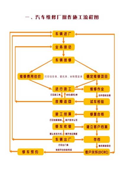 業(yè)務(wù)人員不在時(shí),應(yīng)向顧客道歉并利用留言單記錄其姓名、電話及事由。 二、排定預(yù)約(服務(wù)專員、服務(wù)助理) 1、若為首次預(yù)約,應(yīng)向顧客說(shuō)明預(yù)約固定時(shí)間的好處。 2、提供兩個(gè)時(shí)間段,(非維護(hù)高峰)并請(qǐng)顧客選擇對(duì)他最方便的一個(gè)時(shí)段。 3、當(dāng)顧客選定其最佳預(yù)約時(shí)間,記下預(yù)約時(shí)間和日期。 4、對(duì)每一個(gè)服務(wù)專員登記每位預(yù)約顧客為15分鐘,一個(gè)小時(shí)三次,每小時(shí)留下15分鐘給未預(yù)約的客戶。 5、在預(yù)約時(shí)間表上登記的所有預(yù)約,每天每個(gè)服務(wù)專員用一張。 6、確認(rèn)預(yù)約內(nèi)容。 7、服務(wù)助理應(yīng)在預(yù)約日期前一天提醒顧客。 8、若預(yù)約顧客未到,應(yīng)打電話了解并進(jìn)行再次預(yù)約。 三、準(zhǔn)備顧客資料及歡迎看板(DCAC) 1、登記預(yù)約時(shí)間表 2、可由預(yù)約時(shí)間表準(zhǔn)備隔日的“預(yù)約歡迎看板”。 3、提供“預(yù)約時(shí)間表”副本給配件部,以便他們?cè)谇耙惶靷淞稀?/p> 4、提供“預(yù)約時(shí)間表”副本給業(yè)務(wù)部,以便他們判斷潛在的新車買主并提供試車機(jī)會(huì)。 四、歡迎顧客進(jìn)廠(服務(wù)廠門(mén)口停車線)(服務(wù)專員) 1、服務(wù)專員應(yīng)依次整理并檢閱預(yù)約顧客之工單夾。 2、引導(dǎo)預(yù)約車進(jìn)入“服務(wù)廠門(mén)口停車線”。 3、以顧客名字問(wèn)候顧客及謝謝他們準(zhǔn)時(shí)赴約。 4、引領(lǐng)顧客至“預(yù)約歡迎看板”確認(rèn)顧客已赴約。 5、確認(rèn)顧客資料的正確性。 6、首先確認(rèn)顧客需求,判斷其是否為重復(fù)性維修或其原因。 五、與顧客一起檢視車輛(服務(wù)專員) 1、使用福特三保。 2、使用車輛預(yù)先檢視表《聯(lián)系單》陪同顧客預(yù)先檢視車輛。 3、檢視顧客陳述的故障問(wèn)題。 4、了解并確認(rèn)顧客要求。 5、強(qiáng)調(diào)車輛所有的正確優(yōu)點(diǎn)。 6、利用機(jī)會(huì)確定任何要額外維修的項(xiàng)目(車身?yè)p壞:破裂的燈、鏡;內(nèi)部損壞:輪胎、排氣管等) 六、確認(rèn)維修工作、內(nèi)容(服務(wù)專員) 1、帶顧客至專業(yè)接待區(qū)查看車輛先前的維修記錄。 2、建議顧客應(yīng)維修項(xiàng)目,并提供最佳的處理方案。 3、與顧客確認(rèn)維修項(xiàng)目。 4、在電腦系統(tǒng)上確認(rèn)有無(wú)零配件。 5、將未獲得顧客同意的維修項(xiàng)目記錄在記事本上,作為日后的參考。 七、告知費(fèi)用與完工時(shí)間(服務(wù)專員) 1、對(duì)維修的工作進(jìn)行詳細(xì)的描述 a.所有配件 b.完工時(shí)間 c.工時(shí)、費(fèi)用 d.在聯(lián)系單上簽名 2、將所需的零件通過(guò)電腦傳遞至配件部,預(yù)先備料。 3、將工單夾放在車上,派工。 4、必須由技師確認(rèn)部分,需待查驗(yàn)后,再報(bào)價(jià)格與維修內(nèi)容。 八、專業(yè)服務(wù)中心(服務(wù)專員) 1、引領(lǐng)顧客至休息室。 2、將車輛放在等待維修之指定區(qū)域 3、在服務(wù)專員流程結(jié)束時(shí),如顧客離廠,應(yīng)留下方便聯(lián)絡(luò)的電話,再設(shè)法協(xié)助顧客找到方便的交通工具。 九、完工通知客戶(服務(wù)專員) 1、完工后,服務(wù)專員應(yīng)告知在廠/離廠顧客。 *所有的需求均已完成 *結(jié)帳明細(xì)表符合雙方之價(jià)格。 *車輛在雙方同意的時(shí)間內(nèi)修好。 十、準(zhǔn)備結(jié)帳明細(xì)表(服務(wù)助理) 服務(wù)專員應(yīng)準(zhǔn)備交車所需的結(jié)帳明細(xì)表,并將其放在工單夾內(nèi)。 十一、解釋工作內(nèi)容及交車(服務(wù)專員) *詳細(xì)說(shuō)明執(zhí)行的工作。 *提及時(shí)間及價(jià)格均依約定。 *說(shuō)明索賠工作內(nèi)容(若有的話)。 *說(shuō)明免費(fèi)的洗車和清洗。 *告知顧客已實(shí)施品檢和試車。 *服務(wù)專員應(yīng)帶領(lǐng)顧客至收銀處,解釋維修項(xiàng)目無(wú)誤后,開(kāi)立結(jié)帳明細(xì)表。 2、若適當(dāng)?shù)脑?,?yīng)告知顧客下一次保養(yǎng)時(shí)間和下一次驗(yàn)車時(shí)間,并對(duì)一般注意事項(xiàng)和保養(yǎng)提供建議。 3、感謝顧客之惠顧。