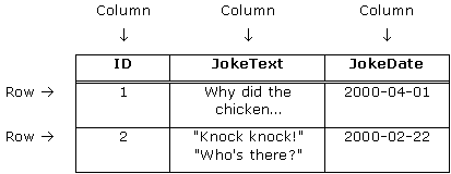 數(shù)據(jù)庫(kù)入門(mén) 正如我在上一章簡(jiǎn)要說(shuō)明的那樣,PHP是一個(gè)服務(wù)器端的腳本語(yǔ)言,通過(guò)這個(gè)語(yǔ)言你可以在你的Web頁(yè)面中添加指令,這樣你的Web服務(wù)軟件(可能是Apache,Personal Web Server或其他任何軟件)會(huì)在向發(fā)出請(qǐng)求的瀏覽器發(fā)送這些頁(yè)面前首先執(zhí)行它。在那個(gè)簡(jiǎn)單的例子中,我展示了如何每次在接受請(qǐng)求的Web頁(yè)面中插入當(dāng)前的日期。 現(xiàn)在一切都很清楚了,但是如果在其中添加一個(gè)數(shù)據(jù)庫(kù)會(huì)真正引起我們的興趣。一個(gè)數(shù)據(jù)庫(kù)服務(wù)器(我們這里是MySQL)是一個(gè)使用一定格式存儲(chǔ)大量信息的程序,通過(guò)這個(gè)程序你可以很簡(jiǎn)單地使用象PHP這樣的腳本語(yǔ)言來(lái)訪問(wèn)數(shù)據(jù)。例如,你可以使用PHP在數(shù)據(jù)庫(kù)中獲得一個(gè)笑話的列表并將其顯示到你的Web站點(diǎn)。 在這個(gè)例子中,笑話被完全存儲(chǔ)在數(shù)據(jù)庫(kù)中。這樣做有兩個(gè)好處。首先,你不再需要為你的每個(gè)笑話寫(xiě)一個(gè)HTML文件,你只需要寫(xiě)一個(gè)PHP文件來(lái)從數(shù)據(jù)庫(kù)中引出任何的笑話并顯示它;其次,要添加笑話到你的Web站點(diǎn)中,也僅僅是添加笑話到數(shù)據(jù)庫(kù)中。PHP代碼在新笑話包含在列表中時(shí)可以自動(dòng)顯示新的笑話。 現(xiàn)在讓我們通過(guò)這個(gè)例子來(lái)看看數(shù)據(jù)是如何在數(shù)據(jù)庫(kù)中存儲(chǔ)的。一個(gè)數(shù)據(jù)庫(kù)包含一個(gè)或幾個(gè)數(shù)據(jù)表(table),每一個(gè)數(shù)據(jù)表包含了一個(gè)事物的列表。對(duì)于我們的笑話數(shù)據(jù)庫(kù)來(lái)說(shuō),我們一開(kāi)始可能需要一個(gè)名為“jokes”的數(shù)據(jù)表,這個(gè)數(shù)據(jù)表包含了一個(gè)笑話列表。數(shù)據(jù)庫(kù)中每個(gè)數(shù)據(jù)表包含一個(gè)或幾個(gè)數(shù)據(jù)列(column)或數(shù)據(jù)域(field)?;氐轿覀兊睦又衼?lái),我們的“jokes”數(shù)據(jù)表可能有這樣的兩列:笑話的正文以及笑話添加到數(shù)據(jù)庫(kù)中的日期。每個(gè)存儲(chǔ)在數(shù)據(jù)表中的笑話我們稱之為一行。要了解這兒提到的所有術(shù)語(yǔ),你可以看下面這張圖: