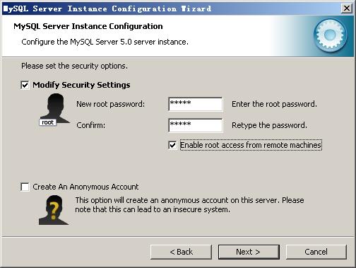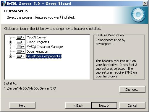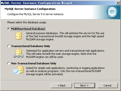 打開下載的mysql安裝文件mysql-5.0.27-win32.zip,雙擊解壓縮,運(yùn)行“setup.exe”,出現(xiàn)如下界面  mysql安裝向?qū)?dòng),按“Next”繼續(xù)  選擇安裝類型,有“Typical(默認(rèn))”、“Complete(完全)”、“Custom(用戶自定義)”三個(gè)選項(xiàng),我們選擇“Custom”,有更多的選項(xiàng),也方便熟悉安裝過程  在“Developer Components(開發(fā)者部分)”上左鍵單擊,選擇“This feature, and all subfeatures, will be installed on local hard drive.”,即“此部分,及下屬子部分內(nèi)容,全部安裝在本地硬盤上”。在上面的“MySQL Server(mysql服務(wù)器)”、“Client Programs(mysql客戶端程序)”、“Documentation(文檔)”也如此操作,以保證安裝所有文件。點(diǎn)選“Change...”,手動(dòng)指定安裝目錄。  填上安裝目錄,我的是“F:ServerMySQLMySQL Server 5.0”,也建議不要放在與操作系統(tǒng)同一分區(qū),這樣可以防止系統(tǒng)備份還原的時(shí)候,數(shù)據(jù)被清空。按“OK”繼續(xù)。  返回剛才的界面,按“Next”繼續(xù)  確認(rèn)一下先前的設(shè)置,如果有誤,按“Back”返回重做。按“Install”開始安裝。  正在安裝中,請(qǐng)稍候,直到出現(xiàn)下面的界面  這里是詢問你是否要注冊(cè)一個(gè)mysql.com的賬號(hào),或是使用已有的賬號(hào)登陸mysql.com,一般不需要了,點(diǎn)選“Skip Sign-Up”,按“Next”略過此步驟。  現(xiàn)在軟件安裝完成了,出現(xiàn)上面的界面,這里有一個(gè)很好的功能,mysql配置向?qū)В挥孟蛞郧耙粯?,自己手?dòng)亂七八糟的配置my.ini了,將 “Configure the Mysql Server now”前面的勾打上,點(diǎn)“Finish”結(jié)束軟件的安裝并啟動(dòng)mysql配置向?qū)А?/p>  mysql配置向?qū)?dòng)界面,按“Next”繼續(xù)  選擇配置方式,“Detailed Configuration(手動(dòng)精確配置)”、“Standard Configuration(標(biāo)準(zhǔn)配置)”,我們選擇“Detailed Configuration”,方便熟悉配置過程。  選擇服務(wù)器類型,“Developer Machine(開發(fā)測(cè)試類,mysql占用很少資源)”、“Server Machine(服務(wù)器類型,mysql占用較多資源)”、“Dedicated MySQL Server Machine(專門的數(shù)據(jù)庫服務(wù)器,mysql占用所有可用資源)”,大家根據(jù)自己的類型選擇了,一般選“Server Machine”,不會(huì)太少,也不會(huì)占滿。  選擇mysql數(shù)據(jù)庫的大致用途,“Multifunctional Database(通用多功能型,好)”、“Transactional Database Only(服務(wù)器類型,專注于事務(wù)處理,一般)”、“Non-Transactional Database Only(非事務(wù)處理型,較簡(jiǎn)單,主要做一些監(jiān)控、記數(shù)用,對(duì)MyISAM數(shù)據(jù)類型的支持僅限于non-transactional),隨自己的用途而選擇了,我這里選擇“Transactional Database Only”,按“Next”繼續(xù)。  對(duì)InnoDB Tablespace進(jìn)行配置,就是為InnoDB 數(shù)據(jù)庫文件選擇一個(gè)存儲(chǔ)空間,如果修改了,要記住位置,重裝的時(shí)候要選擇一樣的地方,否則可能會(huì)造成數(shù)據(jù)庫損壞,當(dāng)然,對(duì)數(shù)據(jù)庫做個(gè)備份就沒問題了,這里不詳述。我這里沒有修改,使用用默認(rèn)位置,直接按“Next”繼續(xù)  選擇您的網(wǎng)站的一般mysql訪問量,同時(shí)連接的數(shù)目,“Decision Support(DSS)/OLAP(20個(gè)左右)”、“Online Transaction Processing(OLTP)(500個(gè)左右)”、“Manual Setting(手動(dòng)設(shè)置,自己輸一個(gè)數(shù))”,我這里選“Online Transaction Processing(OLTP)”,自己的服務(wù)器,應(yīng)該夠用了,按“Next”繼續(xù)  是否啟用TCP/IP連接,設(shè)定端口,如果不啟用,就只能在自己的機(jī)器上訪問mysql數(shù)據(jù)庫了,我這里啟用,把前面的勾打上,Port Number:3306,在這個(gè)頁面上,您還可以選擇“啟用標(biāo)準(zhǔn)模式”(Enable Strict Mode),這樣MySQL就不會(huì)允許細(xì)小的語法錯(cuò)誤。如果您還是個(gè)新手,我建議您取消標(biāo)準(zhǔn)模式以減少麻煩。但熟悉MySQL以后,盡量使用標(biāo)準(zhǔn)模式,因?yàn)樗梢越档陀泻?shù)據(jù)進(jìn)入數(shù)據(jù)庫的可能性。按“Next”繼續(xù) 這個(gè)比較重要,就是對(duì)mysql默認(rèn)數(shù)據(jù)庫語言編碼進(jìn)行設(shè)置,第一個(gè)是西文編碼,第二個(gè)是多字節(jié)的通用utf8編碼,都不是我們通用的編碼,這里選擇第三個(gè),然后在Character Set那里選擇或填入“gbk”,當(dāng)然也可以用“gb2312”,區(qū)別就是gbk的字庫容量大,包括了gb2312的所有漢字,并且加上了繁體字、和其它亂七八糟的字——使用mysql的時(shí)候,在執(zhí)行數(shù)據(jù)操作命令之前運(yùn)行一次“SET NAMES GBK;”(運(yùn)行一次就行了,GBK可以替換為其它值,視這里的設(shè)置而定),就可以正常的使用漢字(或其它文字)了,否則不能正常顯示漢字。按 “Next”繼續(xù)。  選擇是否將mysql安裝為windows服務(wù),還可以指定Service Name(服務(wù)標(biāo)識(shí)名稱),是否將mysql的bin目錄加入到Windows PATH(加入后,就可以直接使用bin下的文件,而不用指出目錄名,比如連接,“mysql.exe -uusername -ppassword;”就可以了,不用指出mysql.exe的完整地址,很方便),我這里全部打上了勾,Service Name不變。按“Next”繼續(xù)。  這一步詢問是否要修改默認(rèn)root用戶(超級(jí)管理)的密碼(默認(rèn)為空),“New root password”如果要修改,就在此填入新密碼(如果是重裝,并且之前已經(jīng)設(shè)置了密碼,在這里更改密碼可能會(huì)出錯(cuò),請