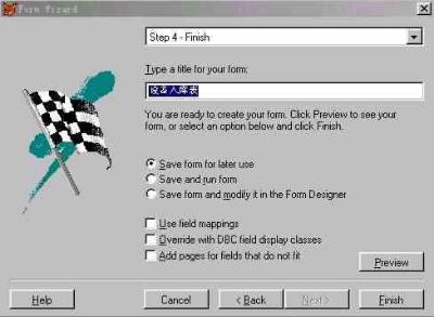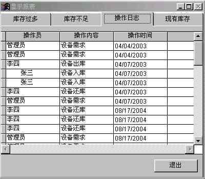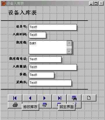 5.2 設(shè)備入庫模塊的設(shè)計(jì) 在設(shè)備入庫模塊中將實(shí)現(xiàn)設(shè)備數(shù)據(jù)的添加和入庫等功能。本模塊設(shè)計(jì)采用先用向?qū)杀韱?,然后修改的方法?shí)現(xiàn)。 首先在項(xiàng)目管理器的文檔視圖下單擊“新建”按鈕,  圖5-3 項(xiàng)目管理器  圖5-4  圖5-5 在接下來的向?qū)е校皵?shù)據(jù)庫和表”選擇“倉儲(chǔ)管理”以及“設(shè)備入庫表”,這是前面定義好的數(shù)據(jù)庫和表。 由于設(shè)備入庫需要顯示所有的字段,因此我們將可用字段全部移至選定字段,如圖所示,單擊“下一步”按鈕,  圖5-6 在表單樣式中,選擇“陰影式”以及“圖片按鈕”,如圖所示。左上角的窗口提供了表單樣式的預(yù)覽功能,圖片按鈕和文本按鈕的區(qū)別在于顯示的時(shí)候是以圖片來表達(dá)功能還是文字來表達(dá),實(shí)現(xiàn)功能的函數(shù)沒有區(qū)別。選擇“上一步”按鈕可以跳回上一個(gè)界面對(duì)表單中顯示的字段進(jìn)行修改。  圖5-7 單擊“下一步”按鈕后,向?qū)нM(jìn)行到“步驟3-排序次序”,如圖所示,選擇“設(shè)備號(hào)”為索引,并選擇升序排列。最后預(yù)覽表單,核對(duì)每項(xiàng)的設(shè)置,完成表單向?qū)?,如圖所示。  圖5-8  圖5-9 值得注意的是,在結(jié)束表單向?qū)埃蛇x擇“保存表單以備將來使用”,“保存并運(yùn)行表單”,或者“保存表單并用表單設(shè)計(jì)器修改表單”。由于Visual FoxPro6.0向?qū)傻谋韱沃痪哂衅毡樾?,?duì)于當(dāng)前設(shè)計(jì)的倉儲(chǔ)管理系統(tǒng)還需要一定的改變,因此以我們選擇“保存表單并用表設(shè)計(jì)器修改表單”。 單擊“完成”按鈕系統(tǒng)提示保存表單,將表單保存為“設(shè)備入庫表.scx”,存于c:倉儲(chǔ)管理目錄下。然后打開表單修改器生成的表單,如圖所示。 在修改BUTTONSET時(shí),可以通過屬性窗口的下拉列表選定單個(gè)按鈕,調(diào)整其位置和其它屬性。如圖所示。  圖 5-10 25  圖 5-11 根據(jù)功能需求,把“cmdprint”、“”cmdexit、“cmdDelete”和“cmdedit”的Visible 屬性都設(shè)為“.F.-假”。添加2個(gè)命令按鈕,Caption屬性分別設(shè)為“修改庫存”和“回主界面”。 ※ 在“回主界面”命令按鈕的click事件中添加代碼如下: thisform.release do form 倉儲(chǔ)管理 ※ 在修改庫存命令按鈕的click事件中添加代碼如下: select 現(xiàn)有庫存表 getid=thisform.設(shè)備號(hào)1.text1.value set order to 設(shè)備號(hào) seek getid if found() getnum=thisform.入庫數(shù)量1.text1.value update 現(xiàn)有庫存表 set 現(xiàn)有庫存=(現(xiàn)有庫存+getnum) where (設(shè)備號(hào)=getid) else insert into 現(xiàn)有庫存表 (設(shè)備號(hào),現(xiàn)有庫存,最大庫存,最小庫存); value (thisform.設(shè)備號(hào)1.text1.value,thisform.入庫數(shù)量1.text1.value,1000,10) endif insert into 操作日志表(操作員,操作內(nèi)容,操作時(shí)間); values (thisform.采購員1.text1.value,'設(shè)備入庫',date()) 保存后運(yùn)行表單,界面如圖所示:  圖 5-12  圖5-13 5.3 設(shè)備出庫模塊的設(shè)計(jì): 在設(shè)備出庫模塊中將實(shí)現(xiàn)設(shè)備出庫數(shù)據(jù)的添加和修改庫存等功能。該模塊的功能和設(shè)備入庫的功能相似。具體操作可以參考設(shè)備入庫模塊的設(shè)計(jì),設(shè)計(jì)最終的界面如圖所示。  5-14 圖 在表單的左上角加上了顯示當(dāng)前時(shí)間的功能,添加標(biāo)簽label2的caption屬性設(shè)為“當(dāng)前時(shí)間”;添加label3的caption屬性設(shè)為空;為當(dāng)前表單的label3init事件添加如下代碼: this.caption=dtoc(date()) 該模塊具體實(shí)現(xiàn)過程不再一一詳細(xì)說明。下面列出了表單中所用到控件的屬性值。 (1) Form1控件的主要屬性: 表5-1 屬性名稱 屬性值 Caption 設(shè)備出庫表 Autocenter .T.-真 BackColor 255.255.255 (2) ButtonSet1控件的主要屬性: 表5-2 控件名 屬性名稱 屬性值 cmdExit Visible .F.-假 cmdDelete Visible .F.-假 cmdPrint Visible .F.-假 cmdEdit Visible .F.-假 Command1 Caption 修改庫存 Command2 Caption 回主界面 下面是設(shè)備出庫表單中“修改庫存”命令按鈕的click事件的代碼: select 現(xiàn)有庫存表 *先在該表單的數(shù)據(jù)環(huán)境中添加現(xiàn)有庫存表 getid=thisform.設(shè)備號(hào)1.text1.value set order to 設(shè)備號(hào) seek getid *在現(xiàn)有庫存表中查找設(shè)備號(hào)等于getid的紀(jì)錄 if found() getnum=thisform.出庫數(shù)量1.text1.value update 現(xiàn)有庫存表; set 現(xiàn)有庫存=(現(xiàn)有庫存-getnum) where (設(shè)備號(hào)=getid) *如果庫存表中有該項(xiàng)設(shè)備,則更新庫存表 insert into 操作日志表(操作員,操作內(nèi)容,操作時(shí)間); values (thisform.領(lǐng)取人1.text1.value,'設(shè)備出庫',date()) else messagebox("出錯(cuò)",1,"錯(cuò)誤的設(shè)備號(hào)") endif 5.4 設(shè)備還庫模塊的設(shè)計(jì) 在設(shè)備還庫模塊中將實(shí)現(xiàn)設(shè)備還庫數(shù)據(jù)的添加和修改庫存等功能,按照前面介紹的步驟設(shè)計(jì)設(shè)備還庫表。 設(shè)備還庫表所可能用到的控件的屬性如表所示: (1)Form1控件的主要屬性: 表5-3 屬性名稱 屬性值 Caption 設(shè)備還庫表 Autocenter .T.-真 BackColor 255.255.255 (2)ButtonSet1控件的主要屬性: 表5-4 控件名 屬性名稱 屬性值 cmdExit Visible .F.-假 cmdDelete Visible .F.-假 cmdPrint Visible .F.