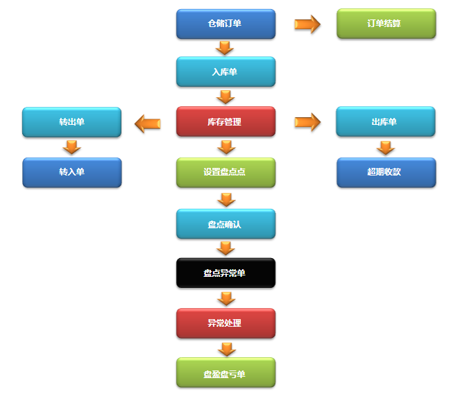 收到客戶的倉庫訂單,然后進行訂單收費,收到客戶的貨物后,進行入庫,在存儲期間進行貨物的盤點,支持PDA移動端進行盤點,如果客戶超期提貨,則另收收取超期費用