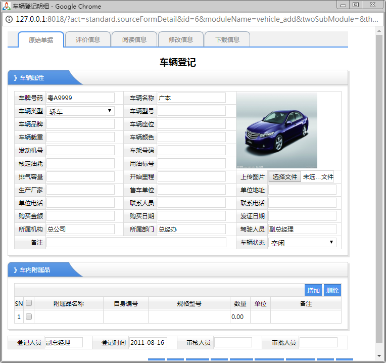 基礎(chǔ)資料 車輛登記 對(duì)車輛基本信息登記