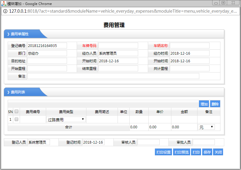 費(fèi)用管理 對(duì)車輛產(chǎn)生費(fèi)用進(jìn)行登記
